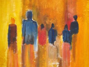 „Auf ein bestimmtes Material habe ich mich nicht festgelegt, auch wenn meine Vorliebe in der Arbeit mit Acryl liegt, so hat doch jedes Material seinen ganz besonderen Reiz und wird von mir stimmungsabhängig angewandt.”