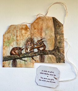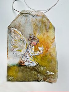 Die Teebeutel zu bemalen, aus alten und gebrauchten Dingen wieder etwas Schönes zu gestalten, macht ihr große Freude.